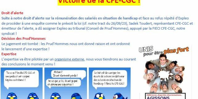 Handicap : victoire de la CFE-CGC ! L’expertise sur la rémunération des salariés en situation de handicap va être lancée ! NAO : suite et fin La CFE-CGC ne signera pas